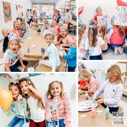 Moxie Art Parties at Moxie Art Studio in Overland Park! Crafted by a K-12 certified art teacher, Moxie Art Parties offers a magical art party experience for kids. We take pride in creating unforgettable birthday memories, something we like to call Art Happiness! Art project choices include sand art painting or painted poster wall hanging, and of course both are filled with the unique charm and colorful joy only found in a Moxie Art Studio party. And, thanks to our guided art making process each child leaves with artwork worthy of display on a wall or in a frame! Check out our website or socials to see what all of the excitement is about!!